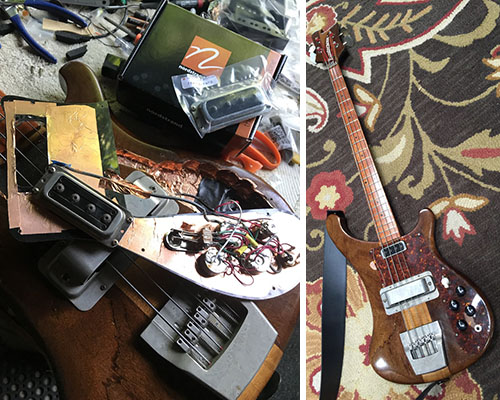 On the music equipment building front, I have built my second PELLOTRON, a mellotron shell for a keyboard and iPad App that disassembles into a case for transport and airline check-in, more basses (including a relic Daphne blue and a vintage correct 64 Sunburst Jazz), and continued tweaking of my (now over 3 year long project) walnut Rickenbacker bass copy CHOC-O-RIC, as well as more JPJ costume and wigs for Zeppelin gigs (go to johnpauljoel.com for more gear/instrument photos and info).