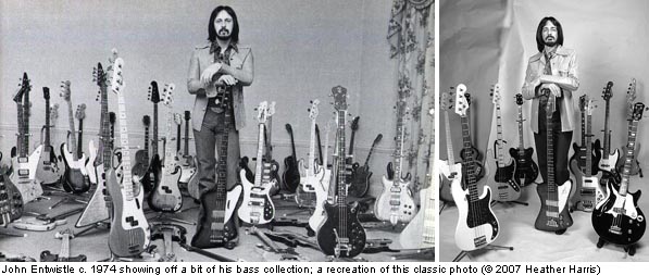 Becoming John Entwistle allows me to indulge in a bit of bass guitar gluttony (within reason - I don't have John's financial reserves), bone up on some great bass parts, and even delve into his somewhat "dandy" stage costume stylings on the late 60's and 70's. He was a bit of a peacock, dressing up to cover his perceived physical shortcomings (a bit overweight, weak chin, etc); I am not perfect, either, and actually have a "lack of manly chest and shoulders" problem that he did not, so I have to try to dress like John AND try not to look like gussied-up coat hanger with womanly hips. Otherwise, I have a somewhat similar body and facial structure to Mr. Entwistle, certainly closer than any Who Tribute band photo I have been able to find online (yes, there are others throughout the US and UK).
